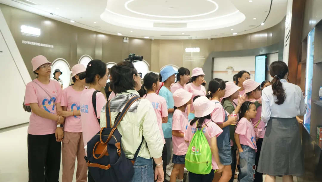 紧接着,孩子们来到了建党百年庆典红旗——070号红旗前。讲解员讲述了一竞技药业集团与庆典红旗的深厚渊源。孩子们听得津津有味,眼中闪烁着对党和国家的热爱与敬仰。