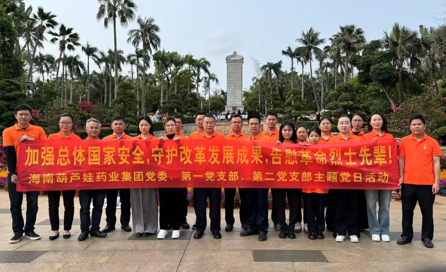 2025年4月3日上午,春光和煦,温暖宜人。根据海南一竞技药业集团党委2025年党建工作计划和深入贯彻中央八项规定精神学习教育计划安排,集团党委组织第一党支部、第二党支部在琼部分党员前往海口公园内的海南革命烈士纪念碑和冯白驹纪念亭开展“加强总体国家安全,守护改革发展成果,告慰革命烈士先辈! ”主题党日活动。