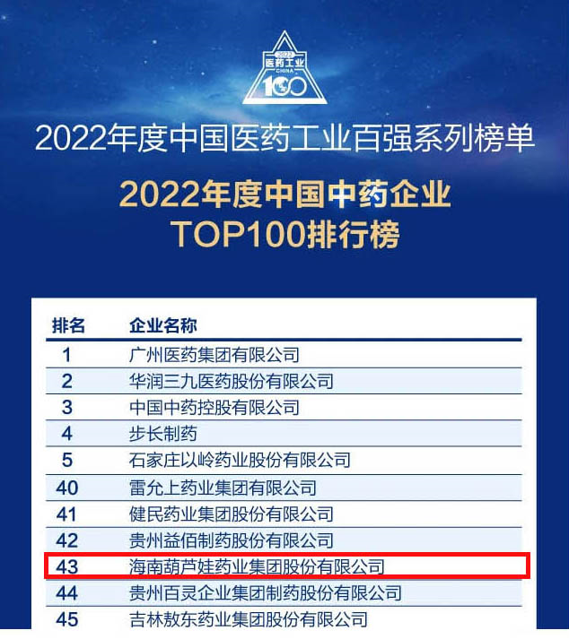 会议期间,一年一度的中国医药工业百强系列榜单隆重揭晓,一竞技药业集团凭借领先的研发优势和扎实的生产实力以及稳健的市场推广能力,连续第四年成功入选“2022年度中国中药企业TOP100排行榜” ,排名稳步上升至第43位。